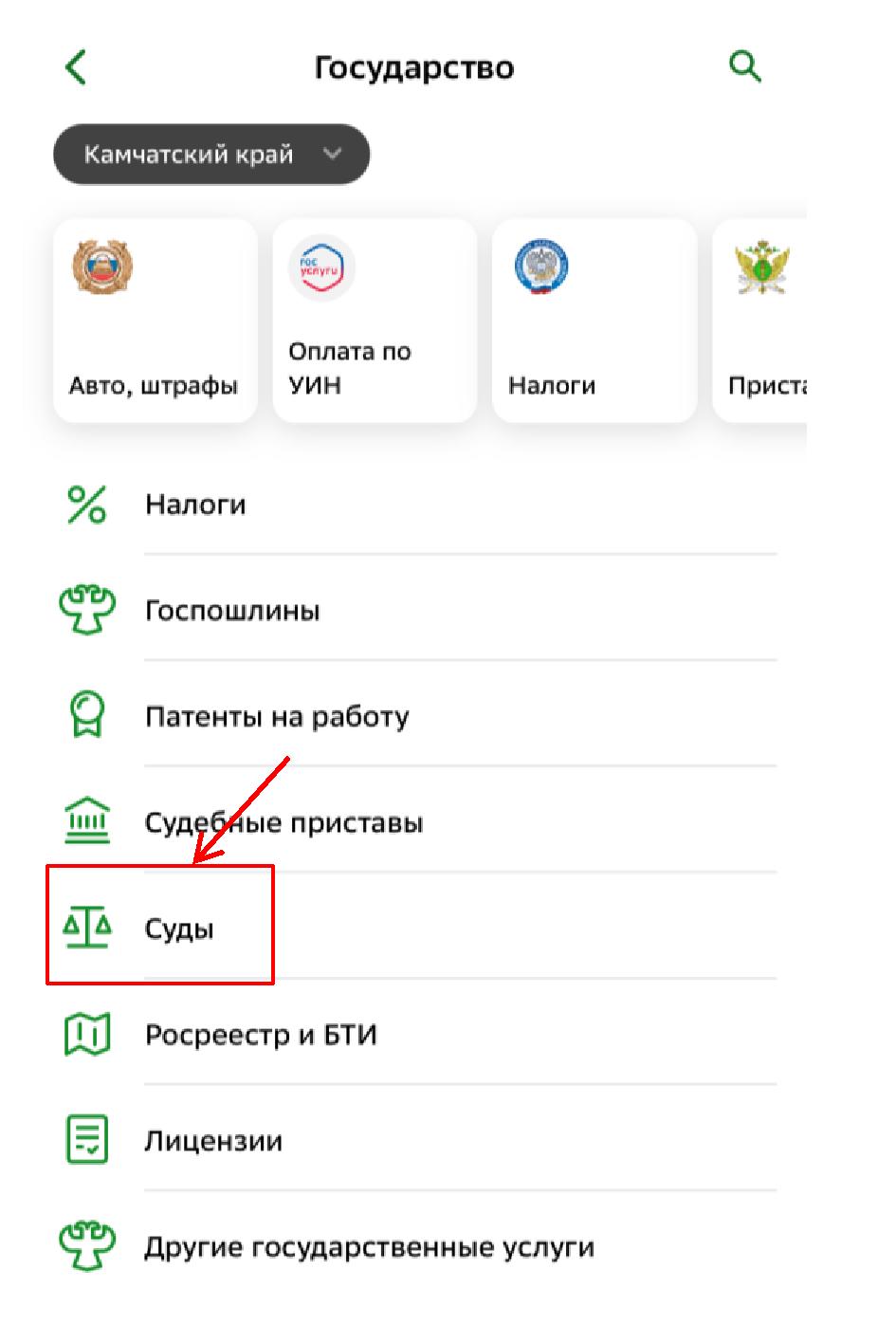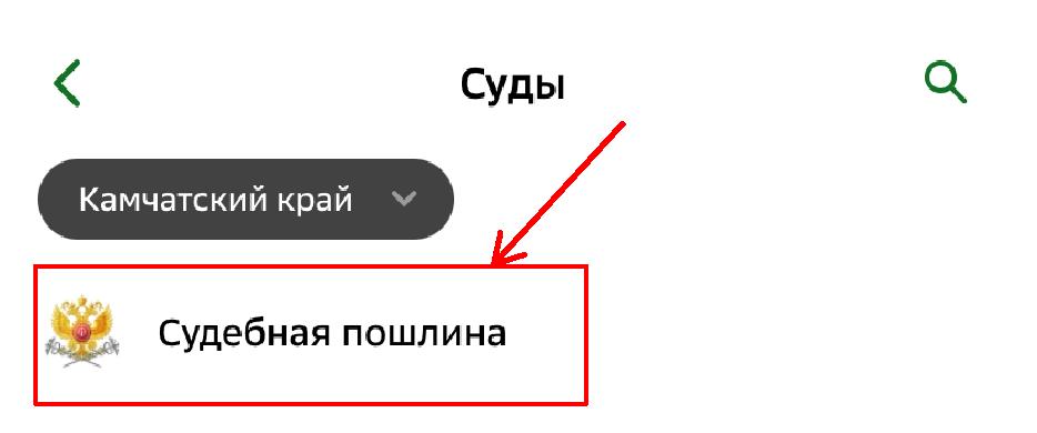 4. Проверьте правильно ли выбран регион оплаты и перейдите в раздел «Судебная пошлина».